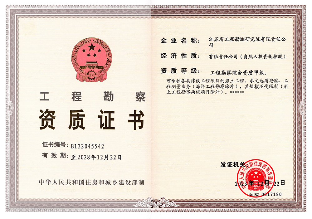 九州(中国)持有国家住建部颁发的“工程勘察综合甲级证书”,配有各类钻探、原位测试、物探、城镇排水管道探查与检测、土工试验数据自动采集处理系统等若干勘察设备仪器。业务范围包括水电与新能源、城乡建设、生态与环境等领域,专业从事建设工程勘察、工程地质、水文地质、岩土工程勘察/设计、污染场地勘察、土壤污染状况调查、地质灾害危险性评估、岩土工程监测检测、城镇排水管道探查与检测、岩石/土壤/地下水及建筑材料试验、工程咨询、地质勘察技术服务、地质灾害治理工程勘查、地质灾害评估、地下水资源调查、堤防隐患探测、穿河管道精确探测等多项业务。