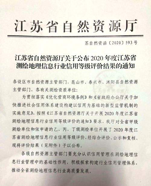 九州(中国)获2020年测绘地信行业AAA信用等...