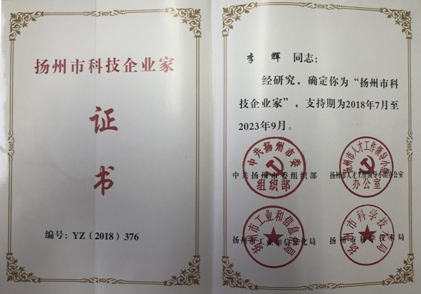 李辉获“扬州市科技企业家”称号