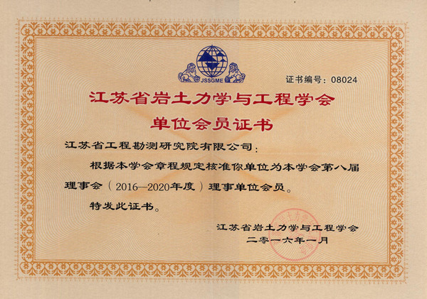 九州(中国)成为江苏省岩土力学与工程学会理事单位